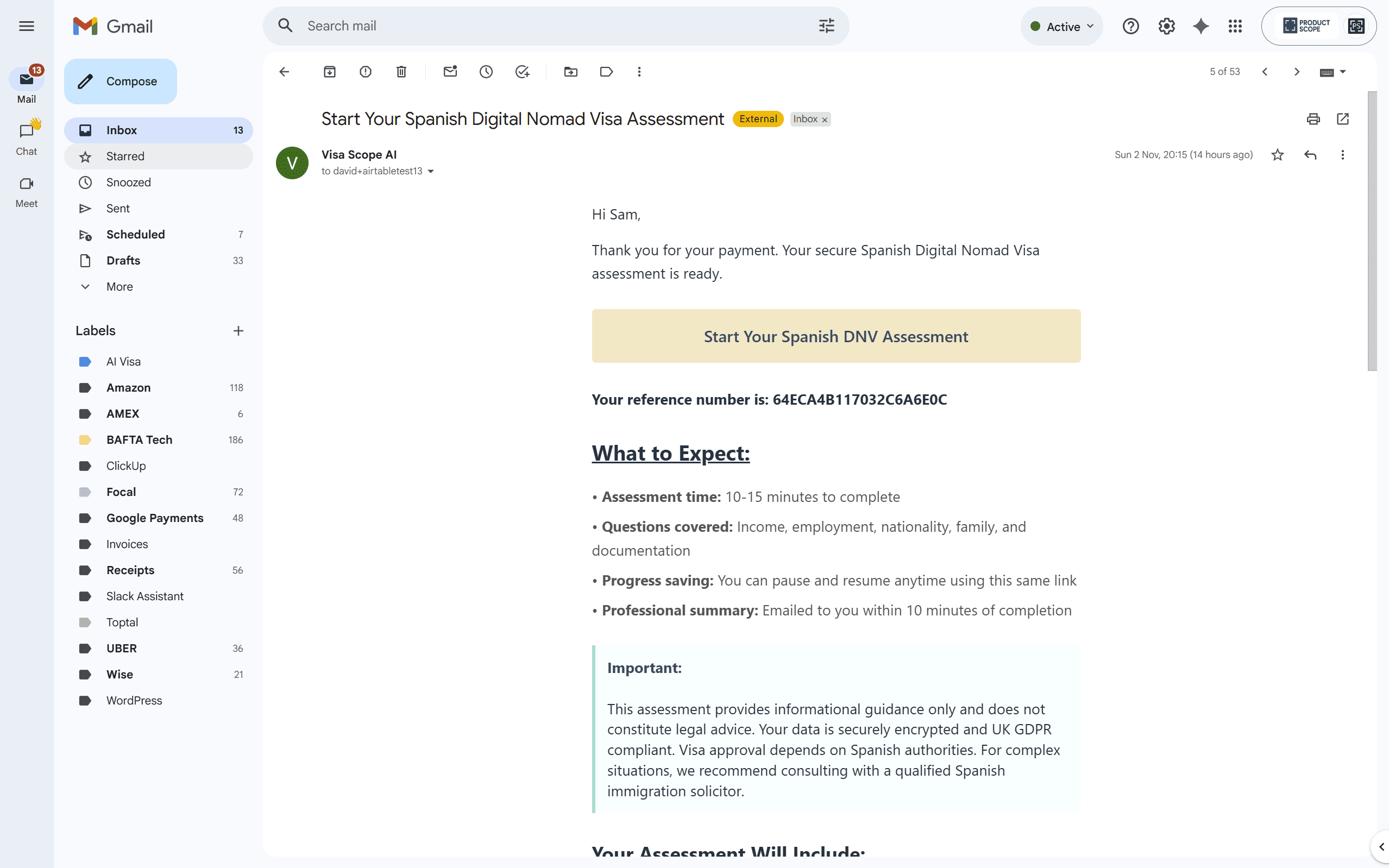 I was particularly clear about the process and made sure users understood what they were paying for: an information service, not legal advice or any guarantee of visa approval.