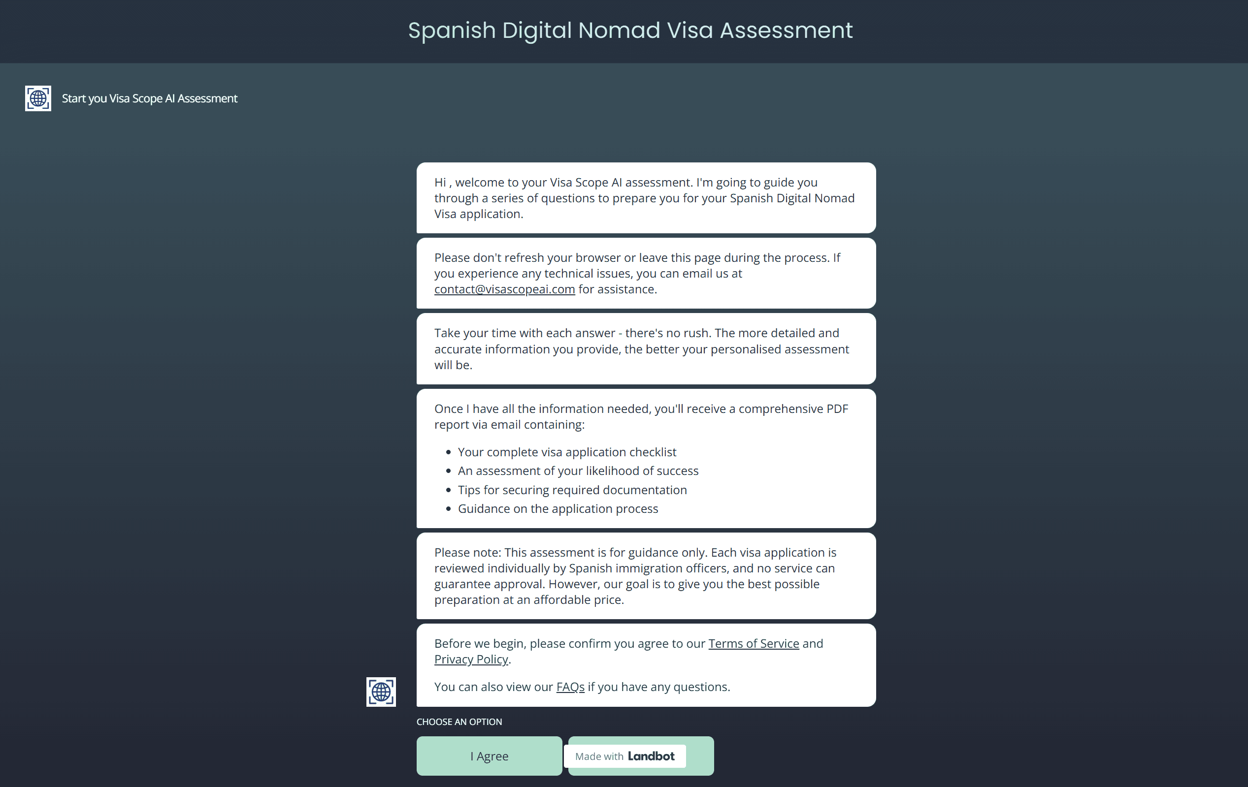 So with all of the workflows upgraded to look professional, the data management and security in place, there was only one final task: to update the AI Agent in Landbot to be more intelligent and to gather the complete data set needed for a comprehensive Spanish Digital Nomad Visa assessment.